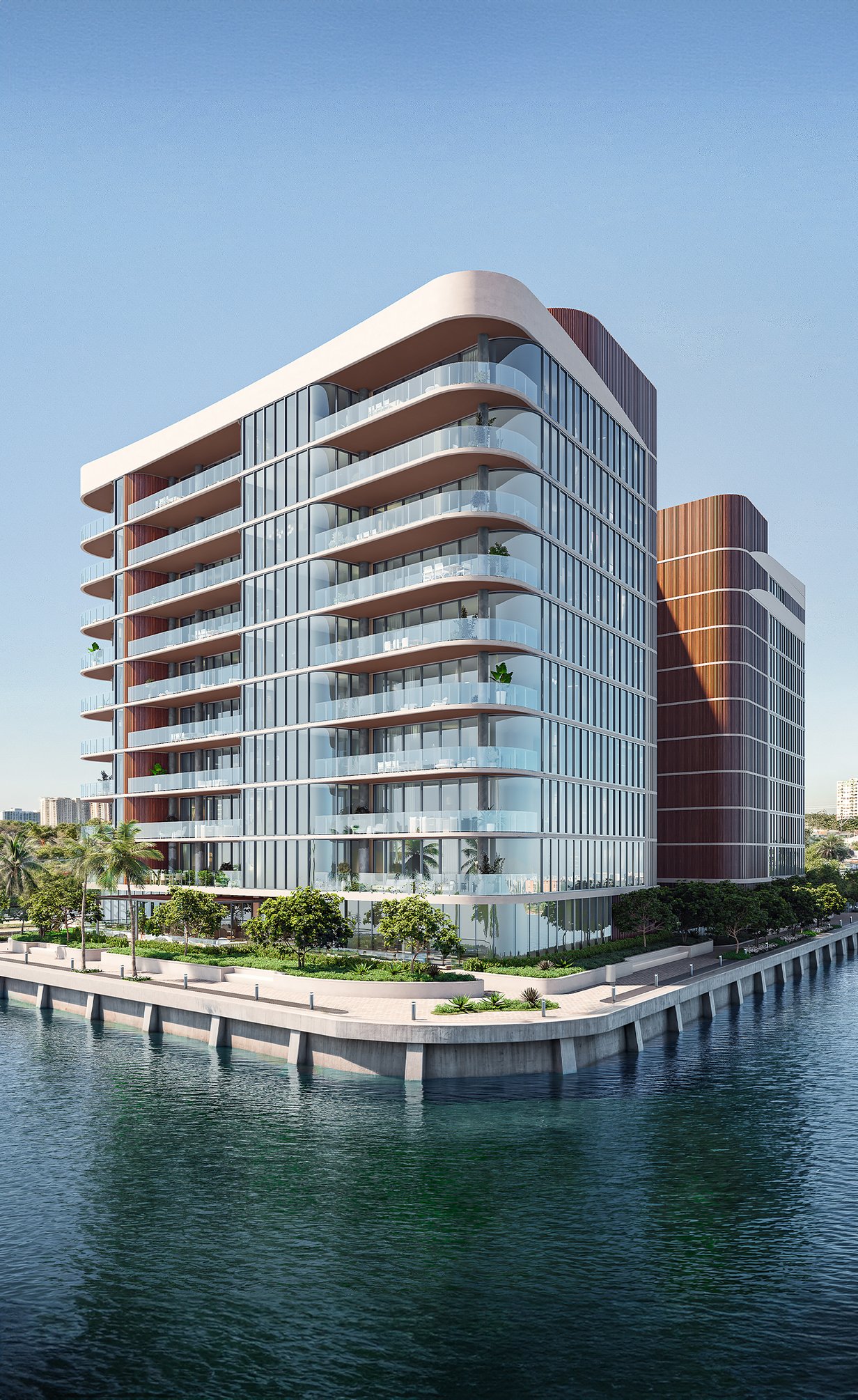 Designed to offer an immersive connection with nature, featuring expansive glass-railed terraces, timeless neutrals, textures, and floor-to-ceiling window walls that effortlessly fuse indoor and outdoor living.