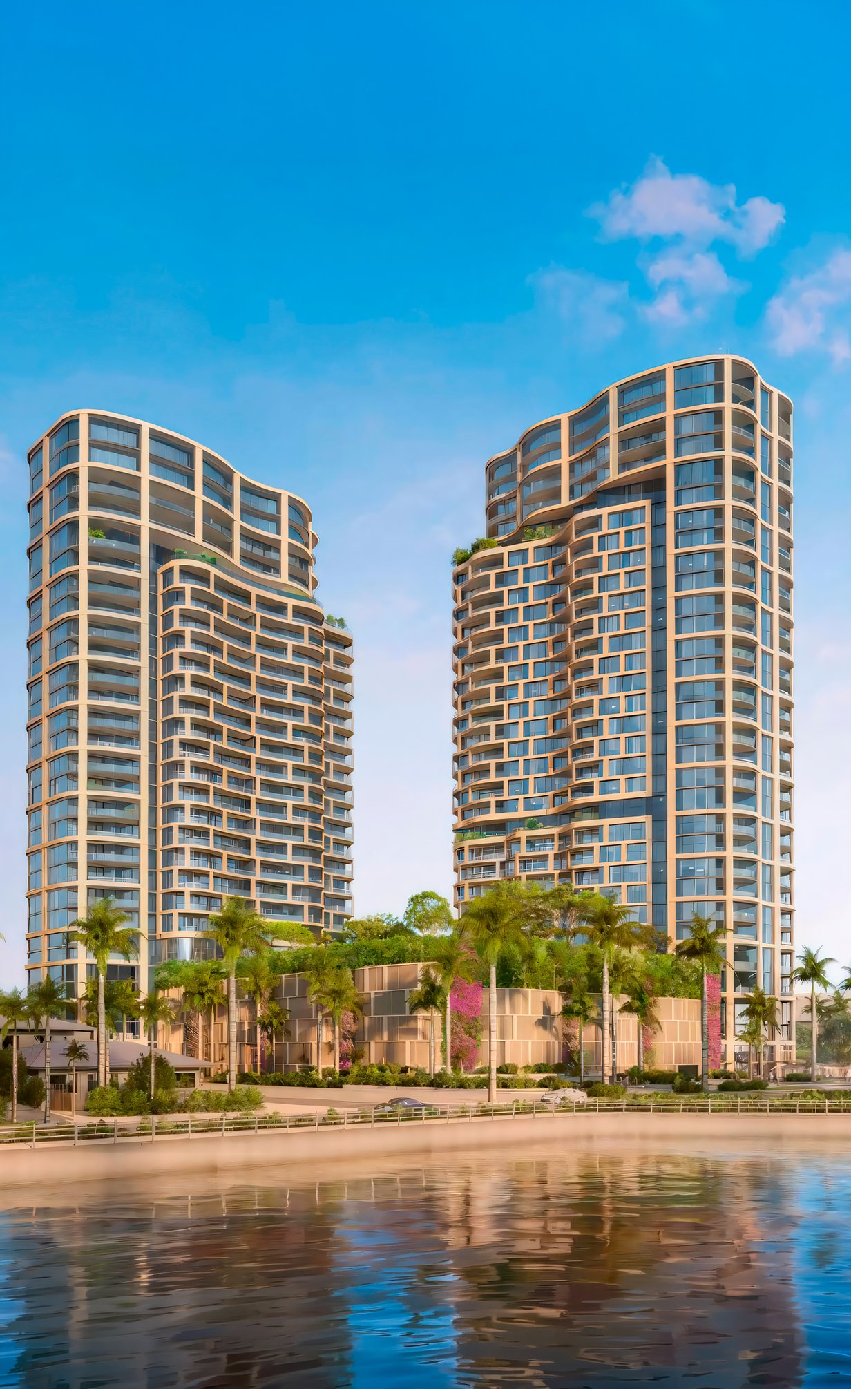 A landscaped amenity podium links both towers and forms a private heart above street level. Designed for social moments and quiet wellness, it creates a sense of arrival that feels sheltered, yet still open to light, breezes, and the surrounding waterfront atmosphere.