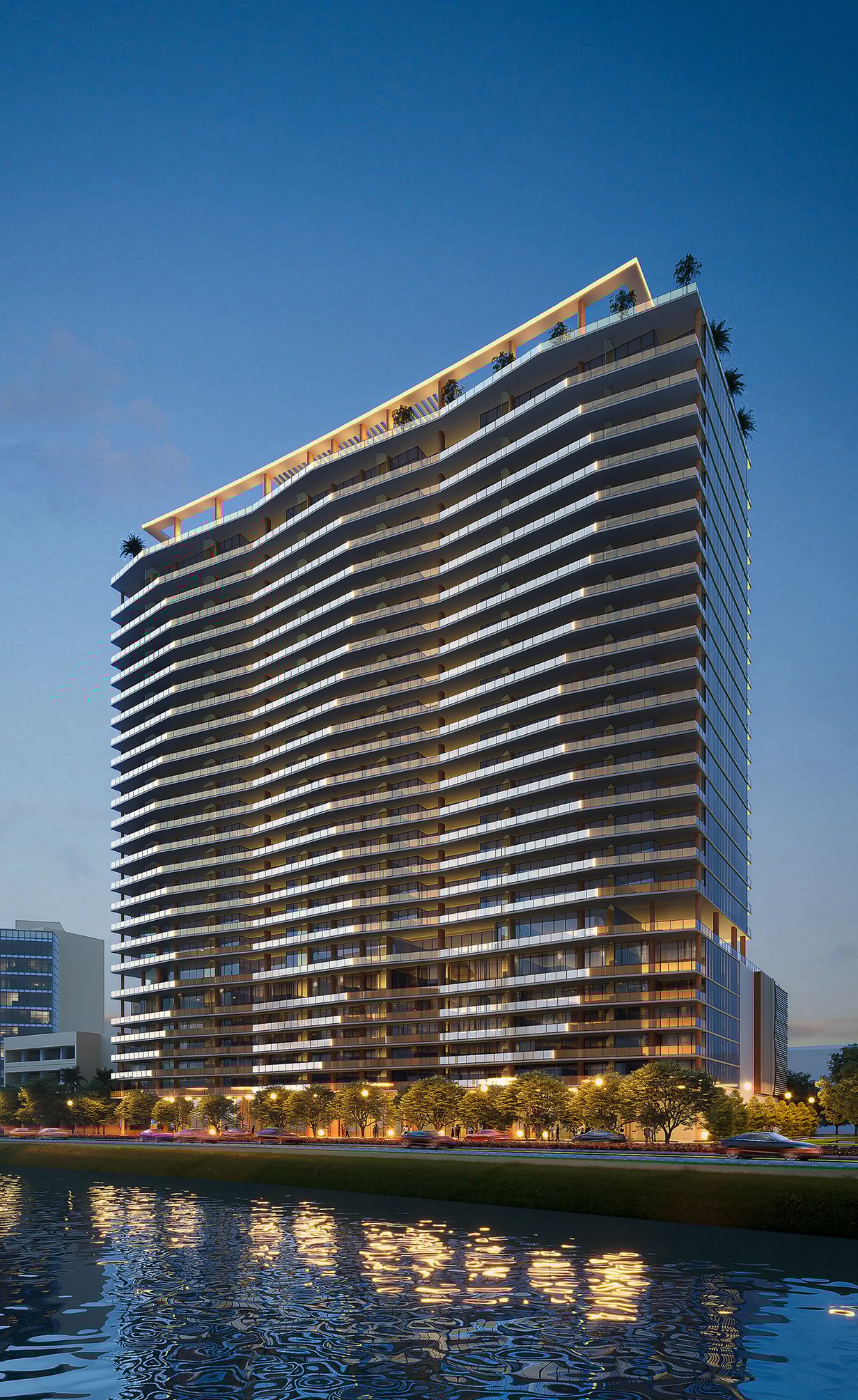 The Berkeley Palm Beach unites a powerhouse team. Visionary developer Australian Property Group, led by Al Adelson, architecture by Bernardo Fort-Brescia of Arquitectonica, interiors by Arquitectonica Interiors, and lush lakeside landscapes by acclaimed global firm EDSA.